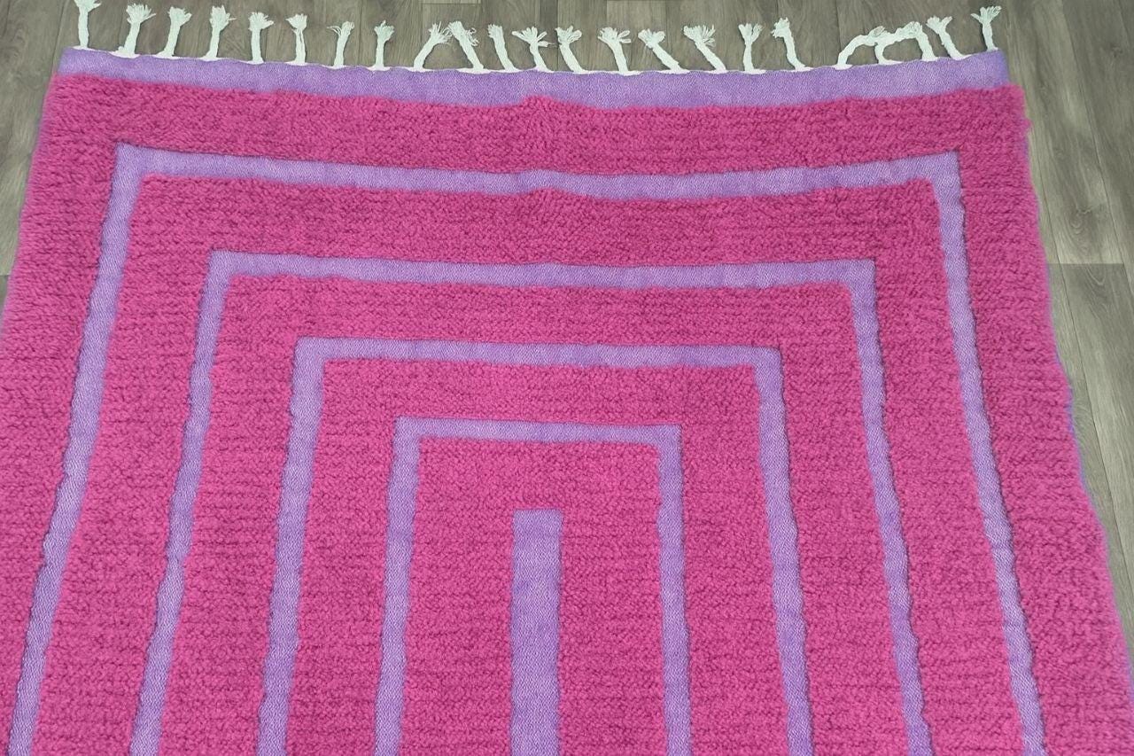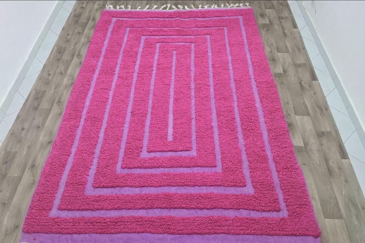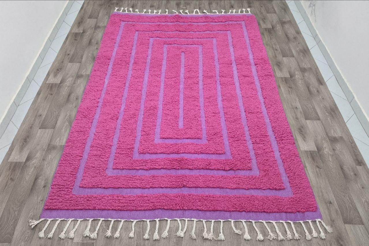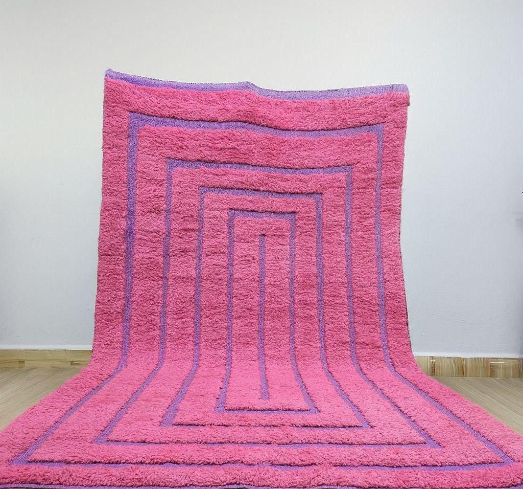 Sodalite Pink Moroccan Rug, Bold Abstract Wool Carpet, Handmade Berber Rug for Living Room, Modern Boho Statement Decor, Luxury Wool Artwork