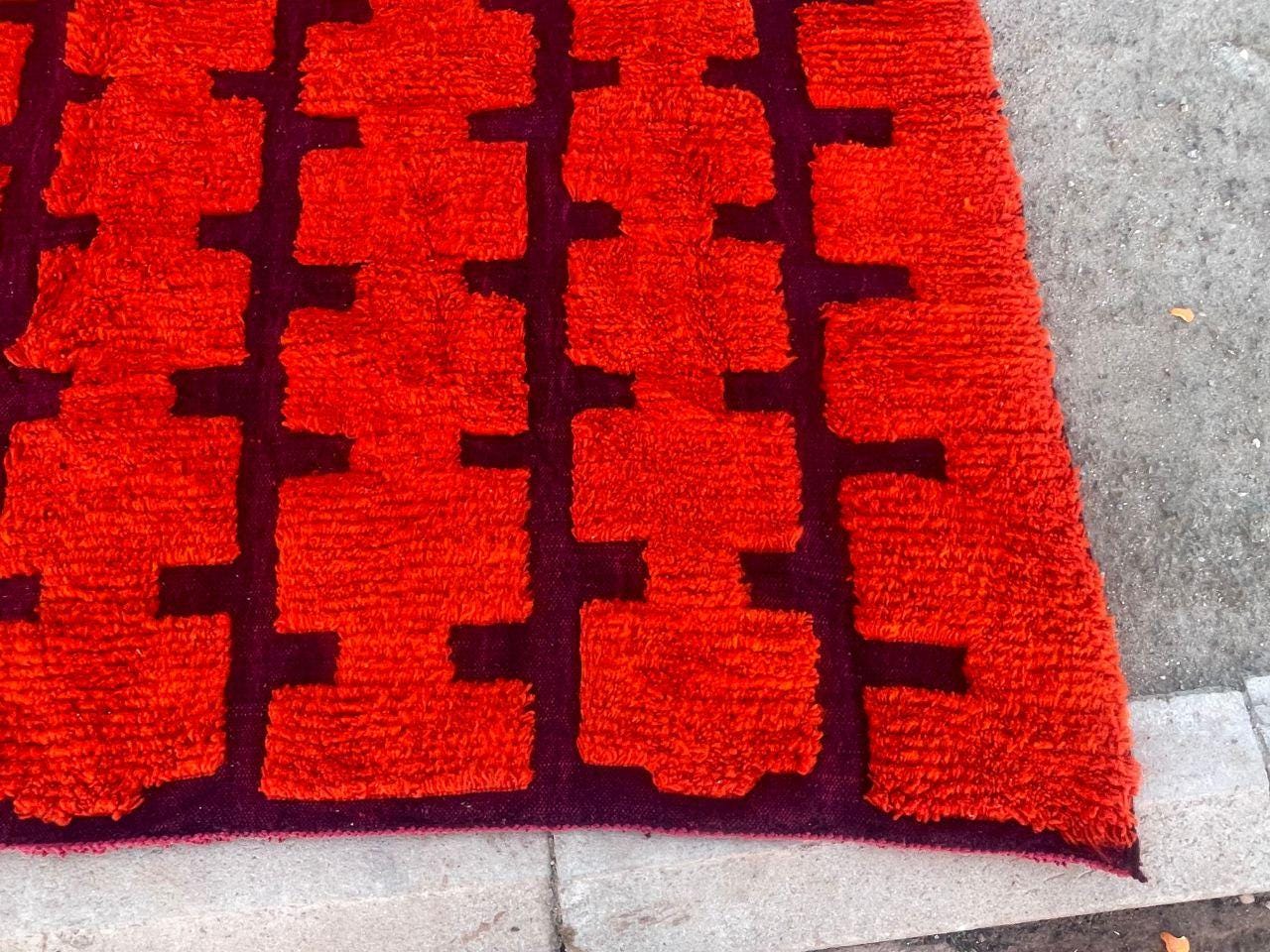 Orange & Burgundy Moroccan Rug. is New Design Morrocan chekerboard rug, Hand-knotted texture and vibrant addition to your home decor, perfect for creating an aesthetic and cozy atmosphere. Crafted by skilled artisans, these rugs feature abstract and trellis patterns inspired by Moroccan heritage.The color palette is diverse, ranging from traditional orange and white to trendy pinks and colorful designs, making them cool and eye-catching. These tufted rugs, often off-white or in various shades, are preppy room decor essentials, adding an exotic touch to your space.In addition to their decorative appeal, Moroccan rugs are functional too. They can serve as an easy-to-clean playmat for kids or a stylish runner rug in your hallway. For larger spaces, consider an 8x10 area rug that doubles as large wall art.What sets these rugs apart is their custom and personalized touch. They make excellent personalized gifts for her, adding a touch of Moroccan flair to her bedroom decor. Whether you choose a vintage Moroccan rug or a modern Beni Ourain rug, it's a piece of Morocco's rich culture that you can cherish in your home.So, if you're looking to infuse your space with a taste of the exotic and vibrant Moroccan culture, consider a handmade Moroccan rug as the centerpiece of your decor, blending tradition with contemporary style.