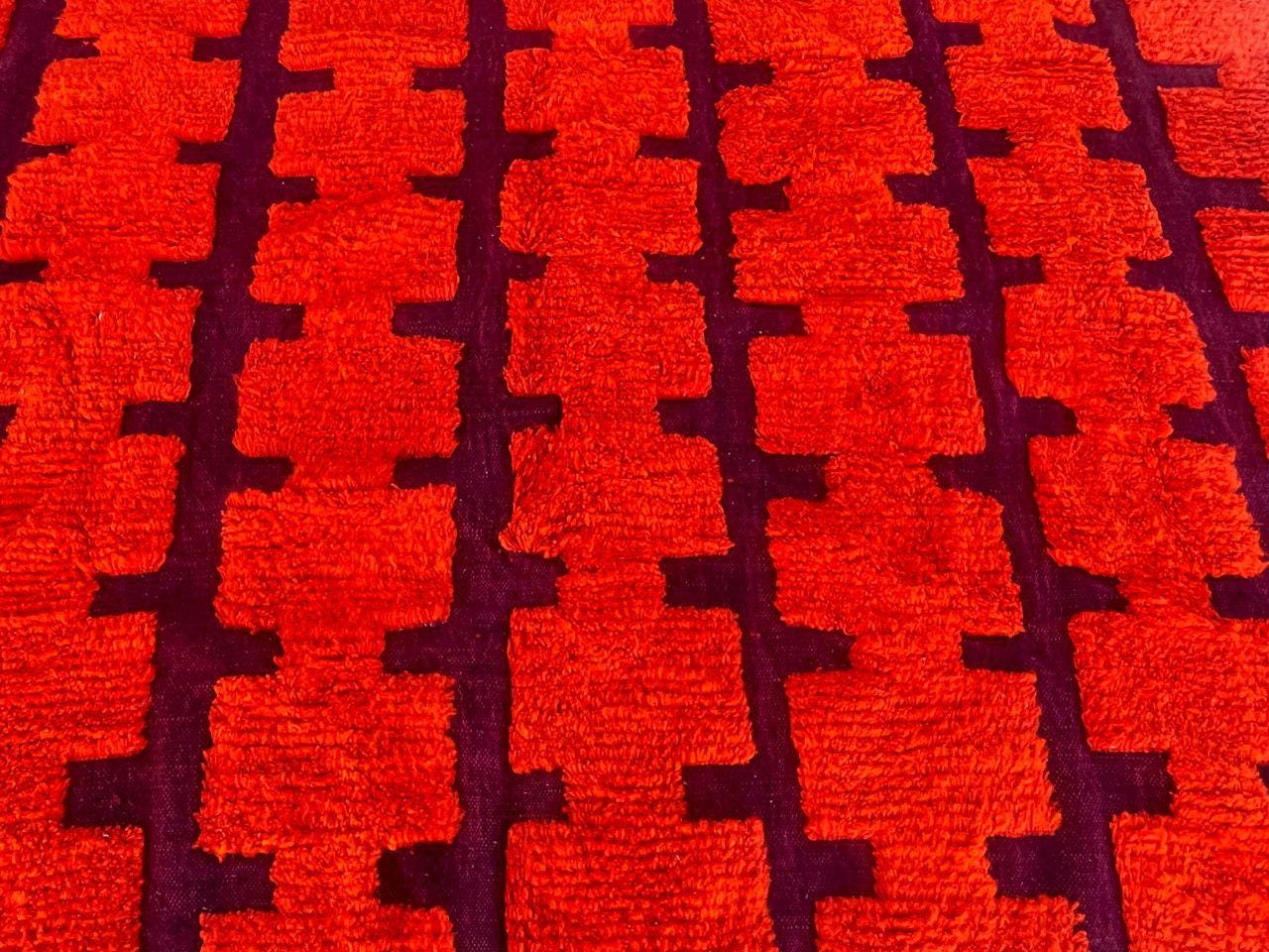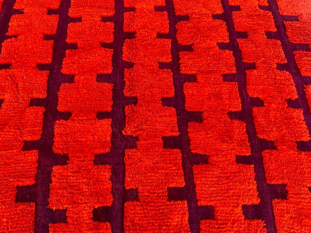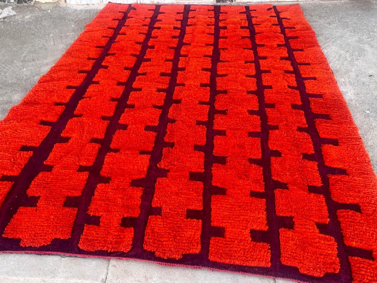 Handmade Moroccan wool rug – Orange checkerboard Berber rug